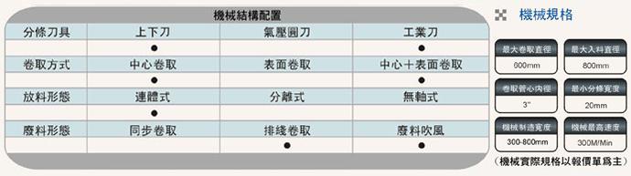 成品卷取方式:可配備板條式氣壓軸及滑差式卷取軸,適用更廣范圍,換軸方式經(jīng)特殊設(shè)計(jì),可以隨時更換。