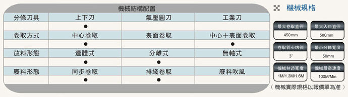 各種紙張、薄膜、膠帶等材料之貼合及分切。